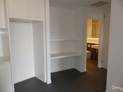 This apartment is very light and airy with a well designed kitchen complete with Miele dishwasher, microwave, gas cooktop and oven. There is an impressive space saving pull out pantry and heaps of drawers. The apartment has a dedicated study nook with connections throughout to the NBN network, good size bathroom with soft lighting and heat lamps, built in laundry with dryer, a fully fitted out walk in robe with drawers, shelves and hangers to the bedroom which opens up to the sunny balcony.