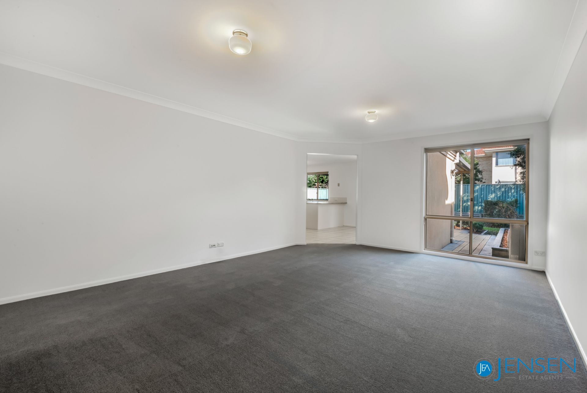 Spacious, light-filled downstairs living area with near-new carpet