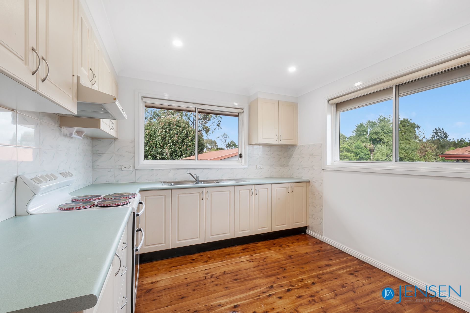 - kitchen with new stove and ample storage