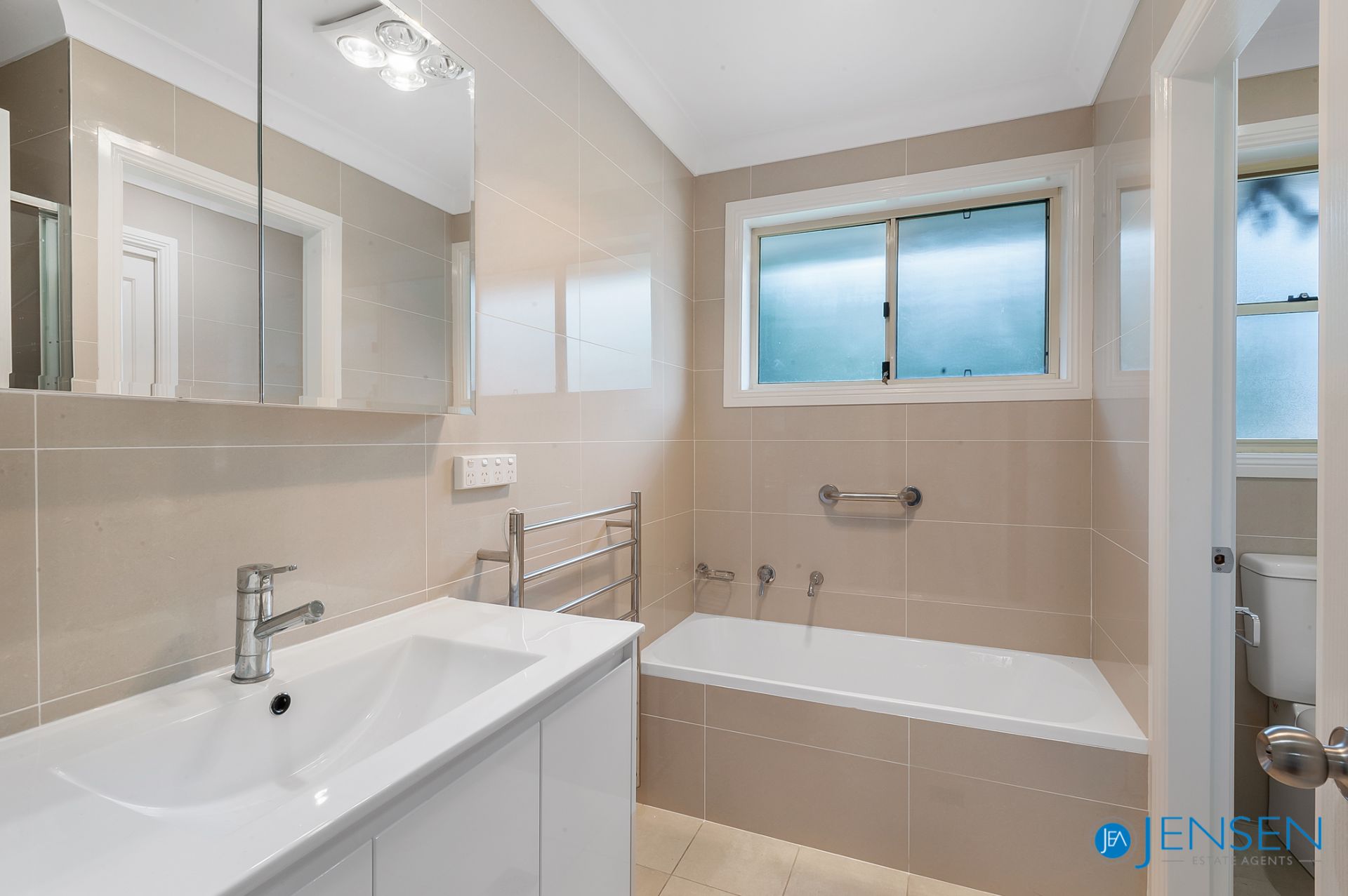 - As new fully tiled bathroom with separate bath and shower