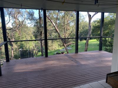 *Timber decking over looking manicured lawns with beautiful bush view.