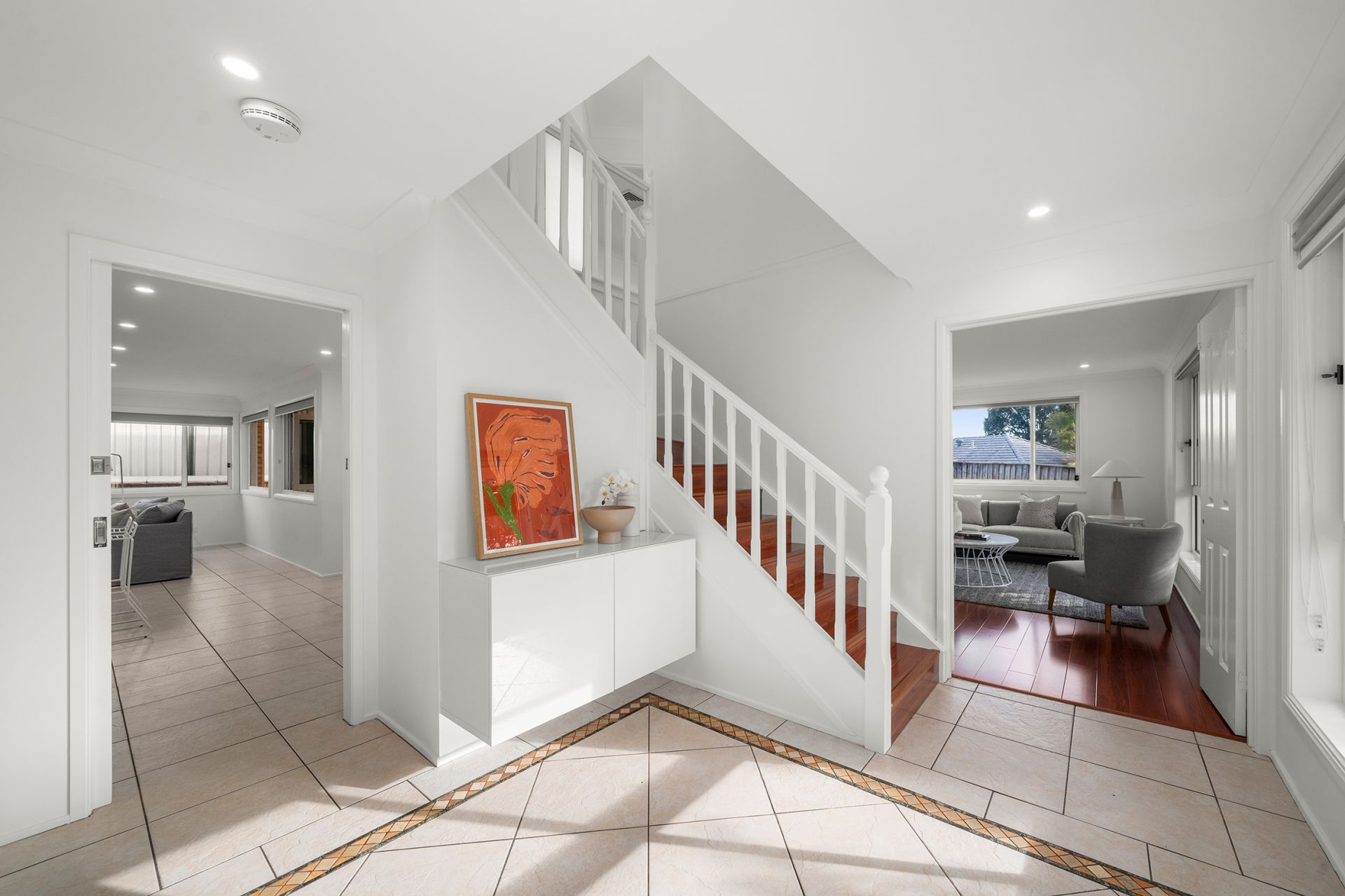 - Three generous bedrooms upstairs with built-in robes, and an additional downstairs bedroom that affords flexibility as a media room or study